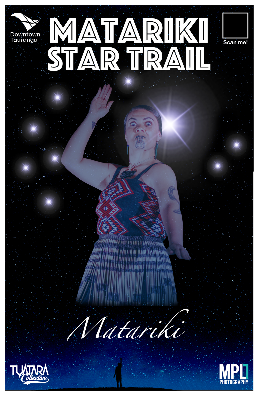 A collaboration with Downtown Tauranga, we styled and photographed members of Te Kapa Haka o Ngāti Ranginui to represent ngā whetū o Matariki - the stars of the Matariki constellation. These images were placed all around Tauranga city forming a star trail - providing a fun interactive activity for whānau during the Māori new year celebrations.